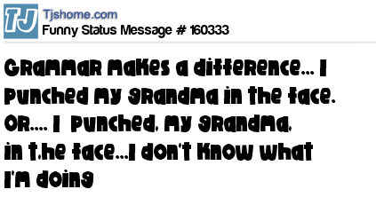 X Grammar makes a difference... I punched my grandma in the face. Or.... I punched, my grandma, in t,he face...I don't know what I'm doing