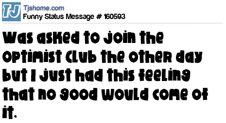 X says Was asked to join the Optimist Club the other day but I just had this feeling that no good would come of it.
