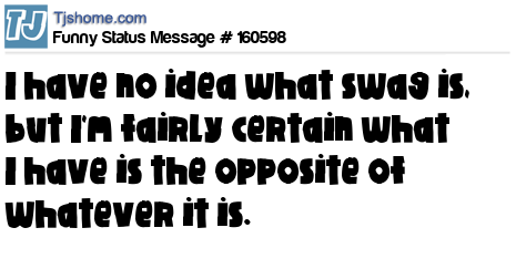 X says I have no idea what swag is, but I'm fairly certain what I have is the opposite of whatever it is.