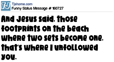 X says And Jesus said, those footprints on the beach where two sets become one, that's where I unfollowed you.