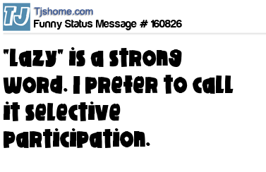 - # 129387 I don't call it "laziness." I call it "selective participation."