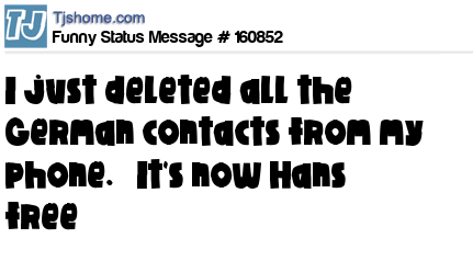 - # 160844 "I just deleted all the German names off my phone. It's Hans free" -