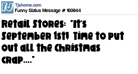 X says Retail Stores:  "It's September 1st!  Time to put out all the Christmas crap...."