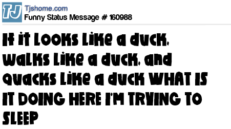 X says If it looks like a duck, walks like a duck, and quacks like a duck WHAT IS IT DOING HERE I'M TRYING TO SLEEP