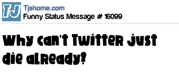 - # 117803 If you're 13 & under & have a Twitter, that's cheating. You have to start from Myspace ---> Facebook ---> Twitter. Just like everybody else.