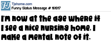 X I'm now at the age where if I see a nice nursing home, I make a mental note of it.