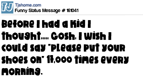 X Before I had a kid I thought,,,,, Gosh, I wish I could say "please put your shoes on" 17,000 times every morning.