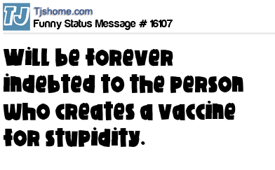 - # 14388 doing research to come up with a vaccine for stupidity. Please donate accordingly.