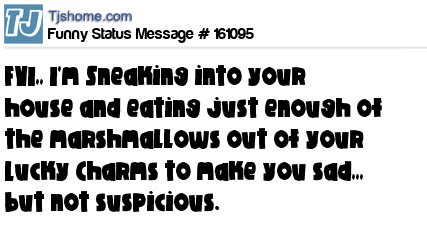 X has FYI,, I'm Sneaking into your house and eating just enough of the marshmallows out of your Lucky Charms to make you sad,,, but not suspicious.
