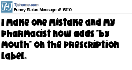 - # 180255 Geez. I make one little mistake and my pharmacist now adds "by mouth" on the prescription label.