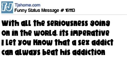 X With all the seriousness going on in the world, its imperative I let you know that a sex addict can always beat his addiction