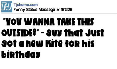 - # 197039 I was at the park flying my kite and this guy came up to me and said "You flying a kite?" I replied "Nah I'm fishing for birds"