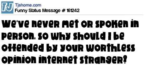 X says We've never met or spoken in person, so why should I be offended by your worthless opinion internet stranger?
