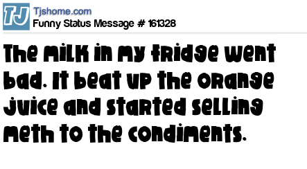 X says The milk in my fridge went bad. It beat up the orange juice and started selling meth to the condiments.