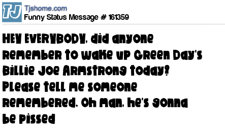 X says HEY EVERYBODY, did anyone remember to wake up Green Day's Billie Joe Armstrong today? Please tell me someone remembered. Oh man, he's gonna be pissed