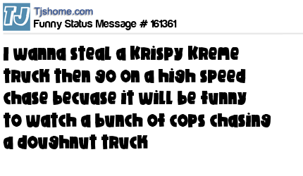 - # 66080 I wanna steal a donut truck and go on a high speed chase cuz I think it'll be funny watching a bunch of cops chasing a donut truck