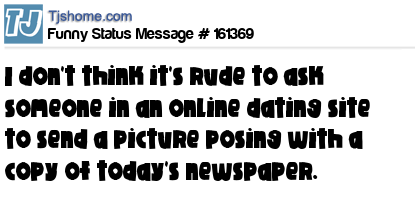 X says I don't think it's rude to ask someone in an online dating site to send a picture posing with a copy of today's newspaper.