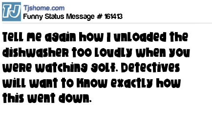 X Tell me again how I unloaded the dishwasher too loudly when you were watching golf. Detectives will want to know exactly how this went down.