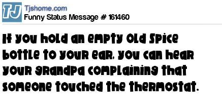 X says If you hold an empty Old Spice bottle to your ear, you can hear your grandpa complaining that someone touched the thermostat.