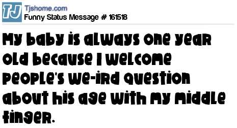 X My baby is always one year old because I welcome people's we-ird question about his age with my middle finger.