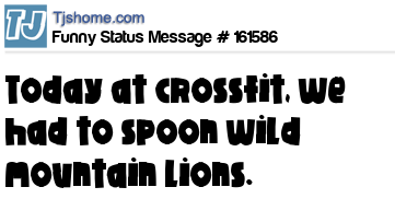 X says Today at crossfit, we had to spoon wild mountain lions.