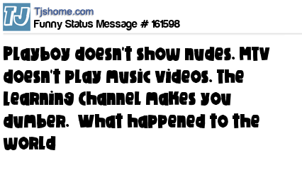 X says Playboy doesn't show nudes. MTV doesn't play music videos. The Learning Channel makes you dumber. What happened to the world