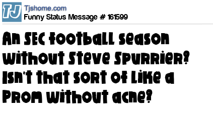 X says An SEC football season without Steve Spurrier? Isn't that sort of like a Prom without acne?