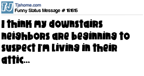 X says I think my downstairs neighbors are beginning to suspect I'm living in their attic...