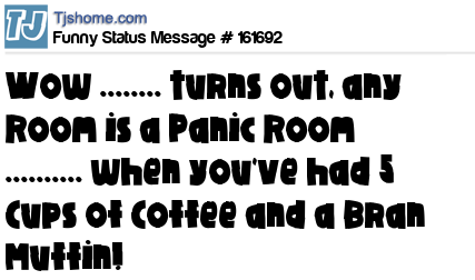 - # 161310 Any room is a panic room if you've had four cups of coffee and a breakfast burrito..