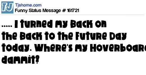 X says ..... I turned my Back on the Back to the Future Day today. Where's my Hoverboard dammit?