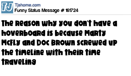X says The reason why you don't have a hoverboard is because Marty McFly and Doc Brown screwed up the timeline with their time traveling