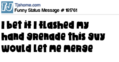 X says I bet if I flashed my hand grenade this guy would let me merge