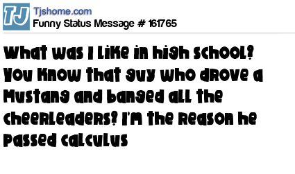 X says What was I like in high school? You know that guy who drove a Mustang and banged all the cheerleaders? I'm the reason he passed calculus