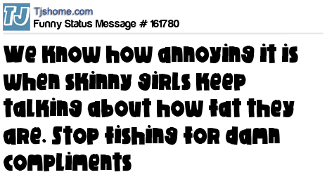 X says We know how annoying it is when skinny girls keep talking about how fat they are. Stop fishing for damn compliments