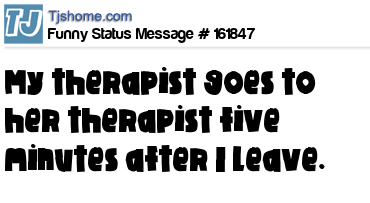 - # 34861 I thought I was going crazy. So I went to a therapist. After half an hour, he paid me to leave. I heard that he is now seeing a therapist.