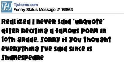 X Realized I never said "unquote" after reciting a famous poem in 10th grade. Sorry if you thought everything I've said since is Shakespeare