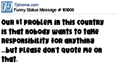 - # 139807 Our #1 problem in this country is that nobody wants to take responsibility for anything ...but please don't quote me!