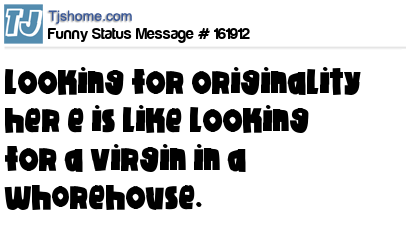 X says Looking for originality her e is like looking for a virgin in a wh0rehouse.