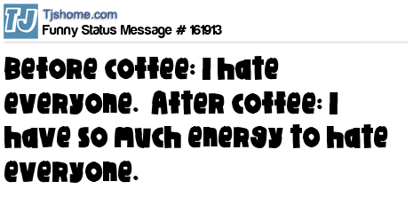 X says Before coffee: I hate everyone. After coffee: I have so much energy to hate everyone.