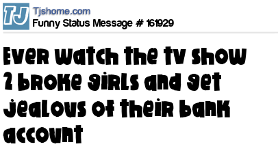 X says Ever watch the tv show 2 broke girls and get jealous of their bank account