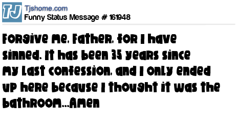 X says Forgive me, Father, for I have sinned. It has been 35 years since my last confession, and I only ended up here because I thought it was the bathroom...Amen