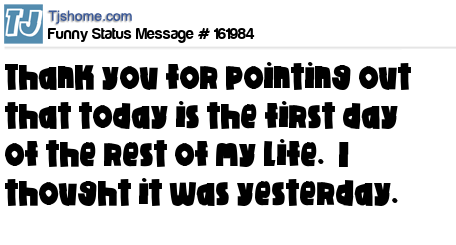 - # 141865 Today is the 2nd day of the rest of your life. Sorry yesterday was the 1st day. Didn't you get the memo?