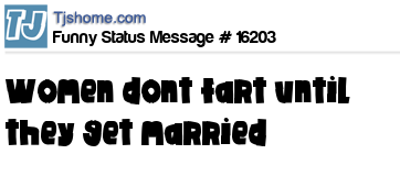 - # 115520 Women don't fart until they get married... that's when they get an a$$hole.