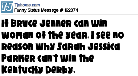 - # 164989 If Bruce Jenner can win Woman of the Year, I see no reason why Sarah Jessica Parker can't win the Kentucky Derby. Giddy up!!!