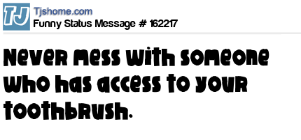 - # 143812 Tip of the day: Don't piss off anyone who has unlimited access to your toothbrush.