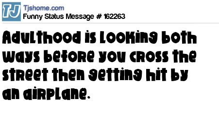 - # 165068 Adulthood is like looking both ways before you cross the street and then getting hit by an airplane.