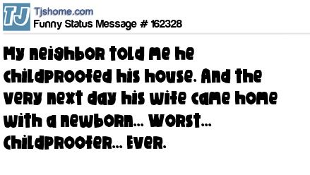 X says My neighbor told me he childproofed his house. And the very next day his wife came home with a newborn... Worst... Childproofer... Ever.