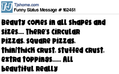 - # 151572 Beauty comes in all shapes & sizes. Small,large,circle,square,thin crust, thick crust,stuffed crust,extra toppings.
