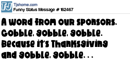 X says A word from our sponsors. Gobble, gobble, gobble. Because it's Thanksgiving and gobble, gobble. . .