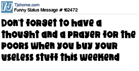 X says Don't forget to have a thought and a prayer for the poors when you buy your useless stuff this weekend